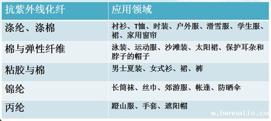 各种抗紫外线化纤的应用领域