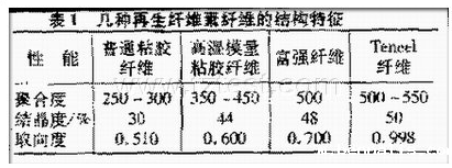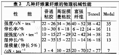 纤维结构上的差异必定会反映在性能上,表2所示是几种再生纤维素纤维的物理机械性能。