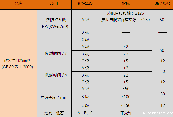 经“PPOBAN”,工艺或“CP”工艺整理而成,具有良好的防火效果,符合《GB8965.1-2009》、《EN11611(EN470)》、《EN11612》(EN531)、《NFPA2112》、《CFR1616/1615》、《J1SL1091》、《ENISO14116》要求。可覆隔热防火膜,广泛应用于消防、冶金、石油、化工、造船、森林防火等行业。