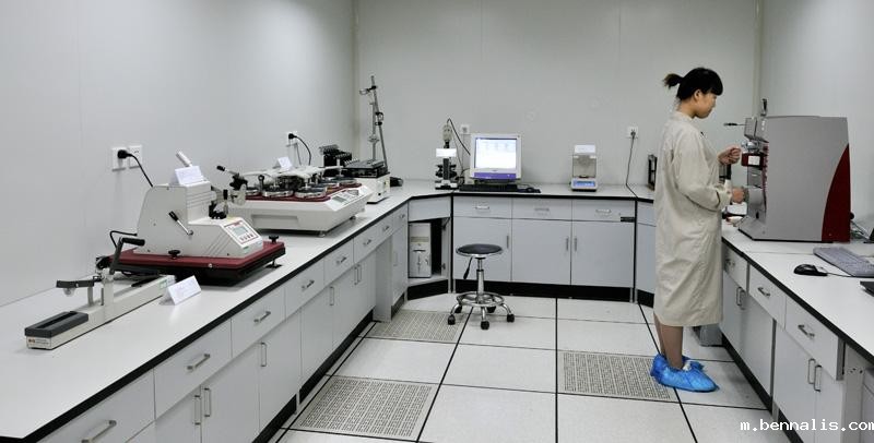 水洗染色坚牢度:将试样和标准贴衬织物缝合在一起,经清洗、清洗和干燥,在合适的温度、碱度、漂白和摩擦条件下进行清洗,使在较短的时间内获得测试结果。其间的摩擦作用是通过小浴比和适当数量的不锈钢珠的翻滚、撞击来完成的,用灰卡进行评级,得出测试结果。不同的测试方法有不同的温度、碱度、漂白和磨擦条件及试样尺寸,具体的要根据测试标准和客户要求来选择。一般水洗染色坚牢度较差的颜色有翠兰、艳兰、黑大红、藏青等。