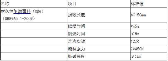耐久性防火系列产品是由纯棉布料经防火后整理而成,具有良好的防火性能,遇火只炭化,不蔓延,离火自熄。广泛用于石油、化工、军工、消防、煤矿等行业制作防火防护服,亦可用于宾馆、饭店、歌厅剧院的防火装饰布。氧指数≥30,毁损长度≤150㎜,阴燃时间≤5s。续燃时间≤5s,耐水洗12次,符合GB8965.1-2009 《防火防护服》要求。