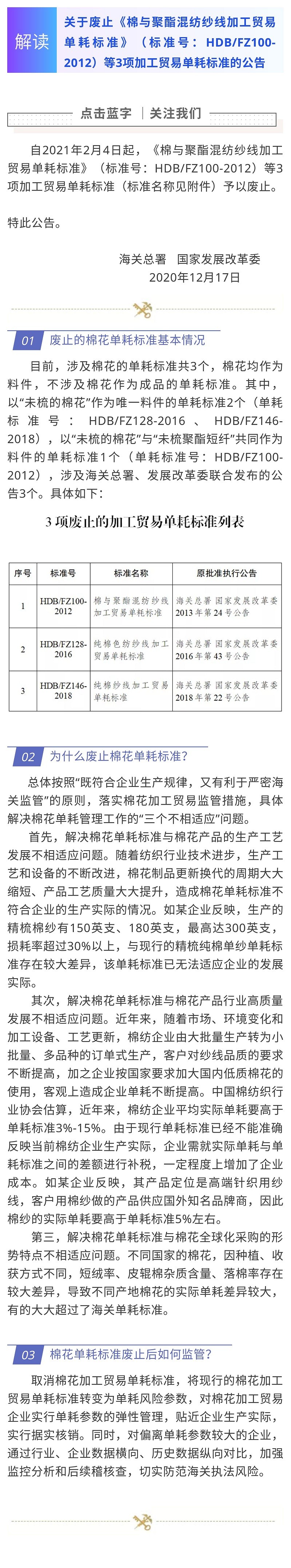 解读关于废止项纱线加工贸易单耗标准的公告