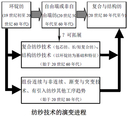 主要指在环锭纺纱机上通过短/短、短/长纤维加捻成的层压纱和通过单须条分束或须条集聚方式得到的纱。