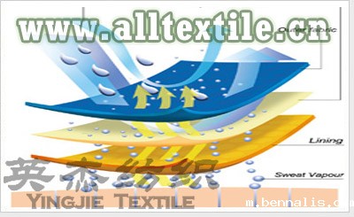 2) TPU,TPFE,PU,PEVA,PE转移涂层等多种薄膜保证透气,透湿性能良好;TPU复合面料, TPU复合面料
