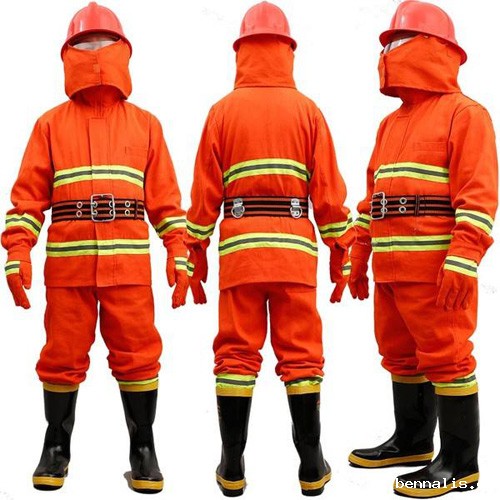 消防战斗服衣料与特点:由防火表层,隔水层,隔热层和阻燃舒适里料组成,